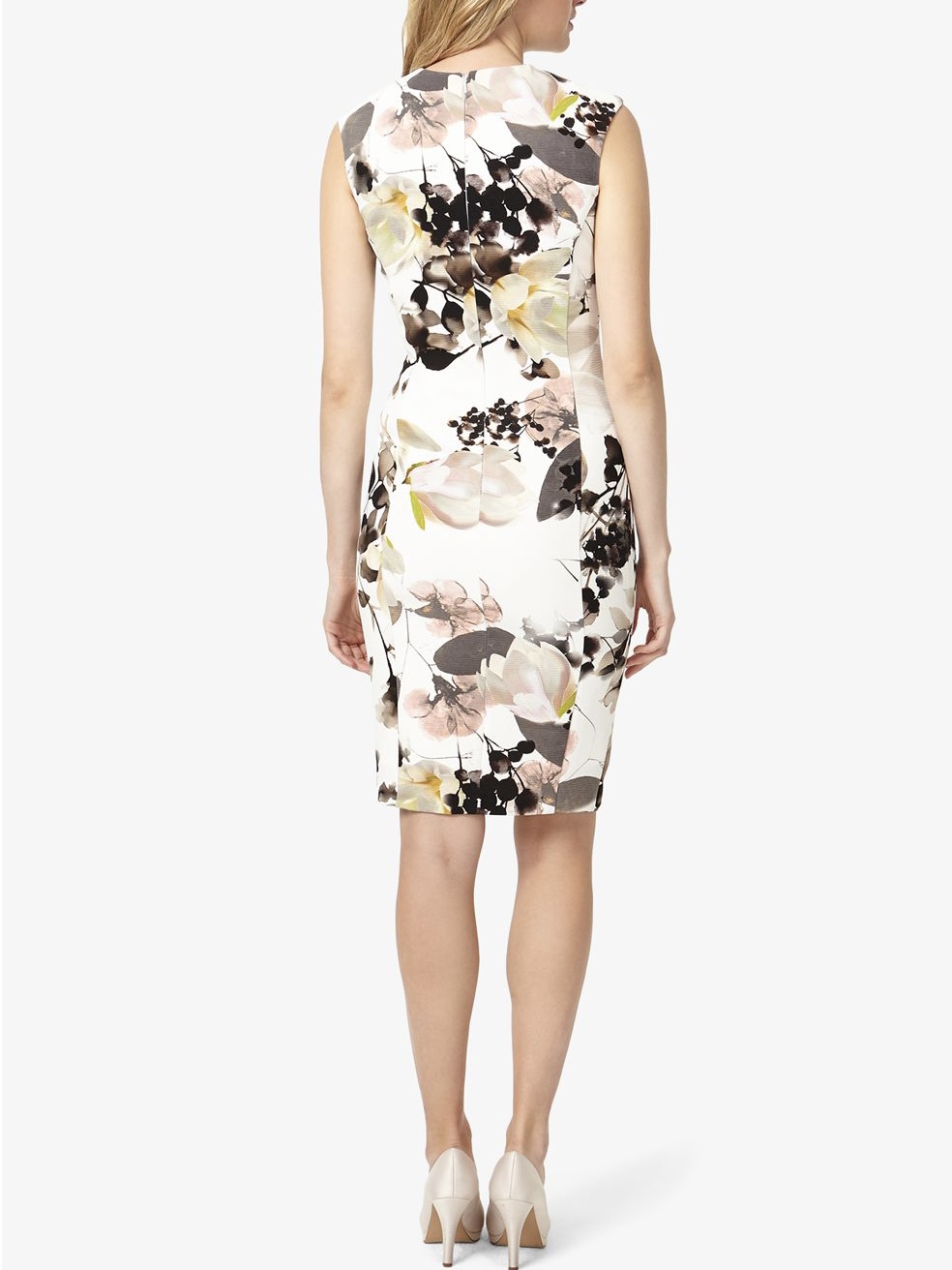 Elegancka sukienka marki Phase Eight o dopasowanym, kobiecym kroju, który pięknie podkreśla sylwetkę. Model bez rękawów, z klasycznym, zabudowanym dekoltem i subtelnym taliowaniem, które nadaje całości smukłego charakteru.